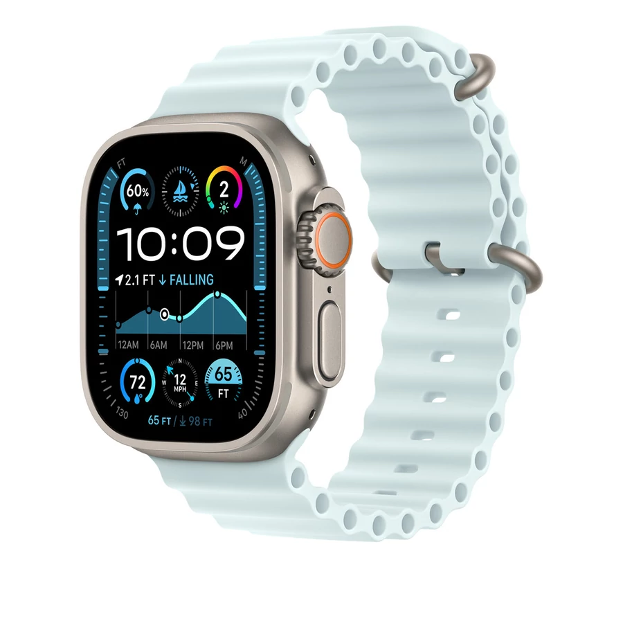Apple Watch 49mm Band: Ice Blue Ocean Band Extension - Natural Titanium Finish