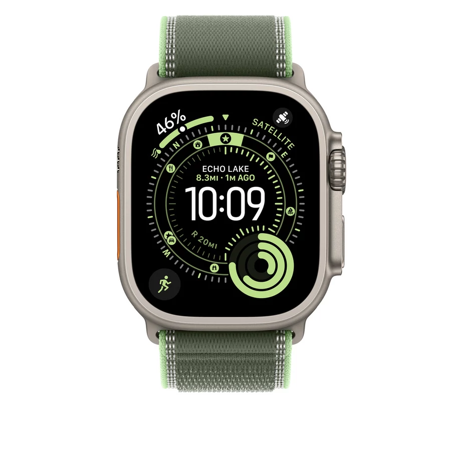 Apple Watch 49mm Loop: Green/Neon Trail Loop - S/M - Natural Titanium Finish