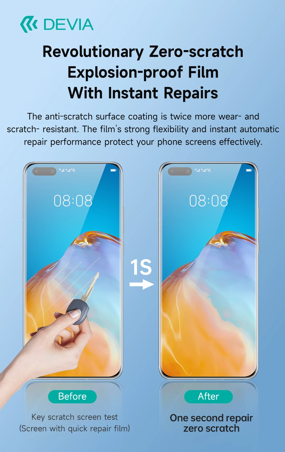 A Devia EPU 1S nem csupán egy védőréteg, hanem egy "élő" pajzs a telefonod számára. Míg a legtöbb fólia az első karcolás után esztétikailag sérül, az EPU 1S intelligens molekuláris szerkezete azonnal munkába áll, hogy helyreállítsa a felület épségét.