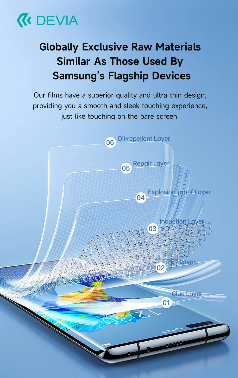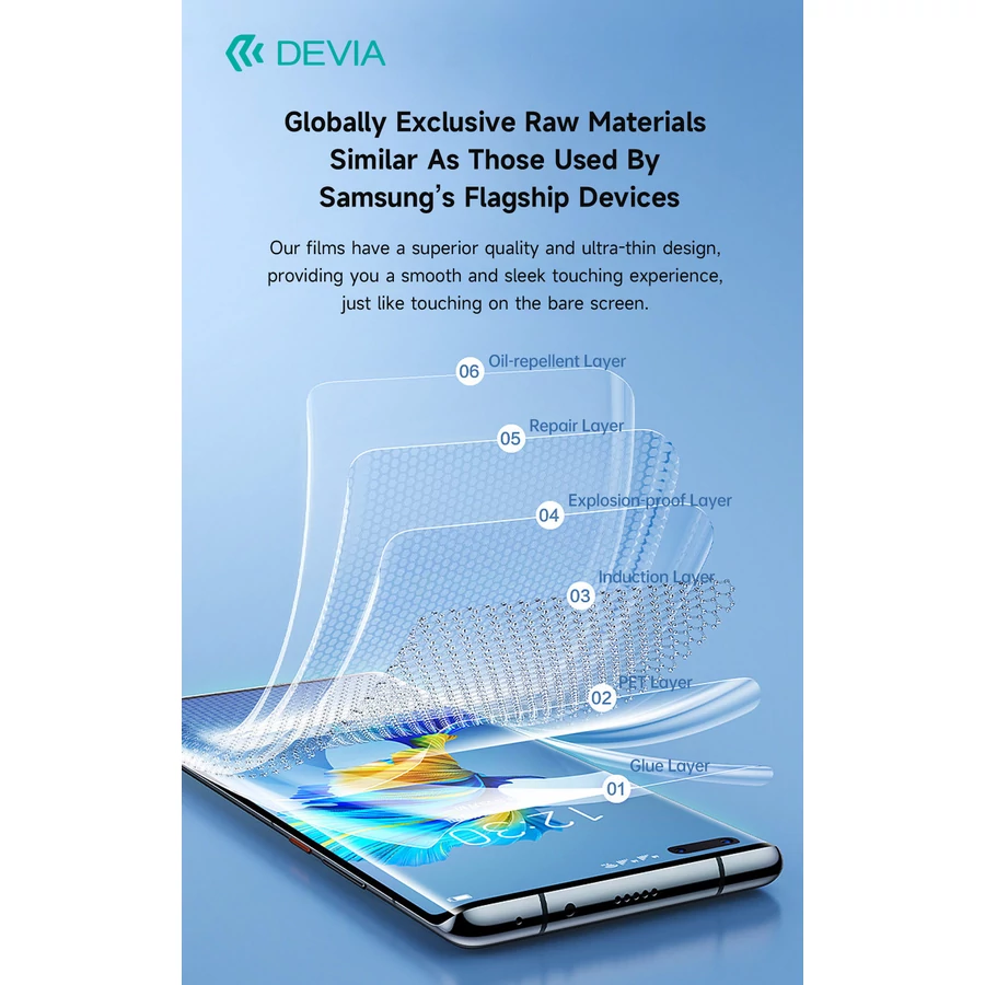 Devia UV Karc- és Ütésálló Fólia A hydrogél rugalmassága, az üveg keménysége – UV-fénnyel edzett páncél.